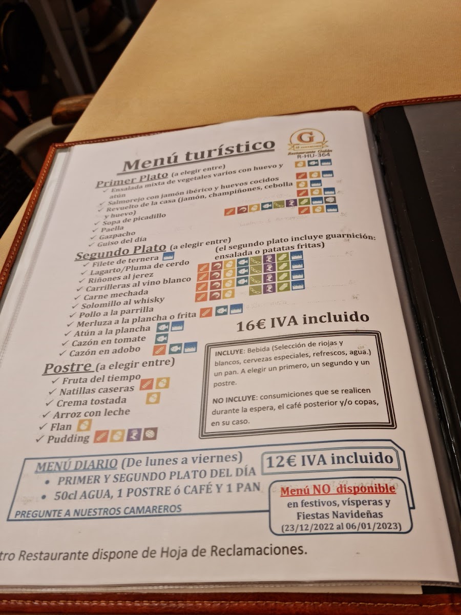 Restaurante Galán Menu